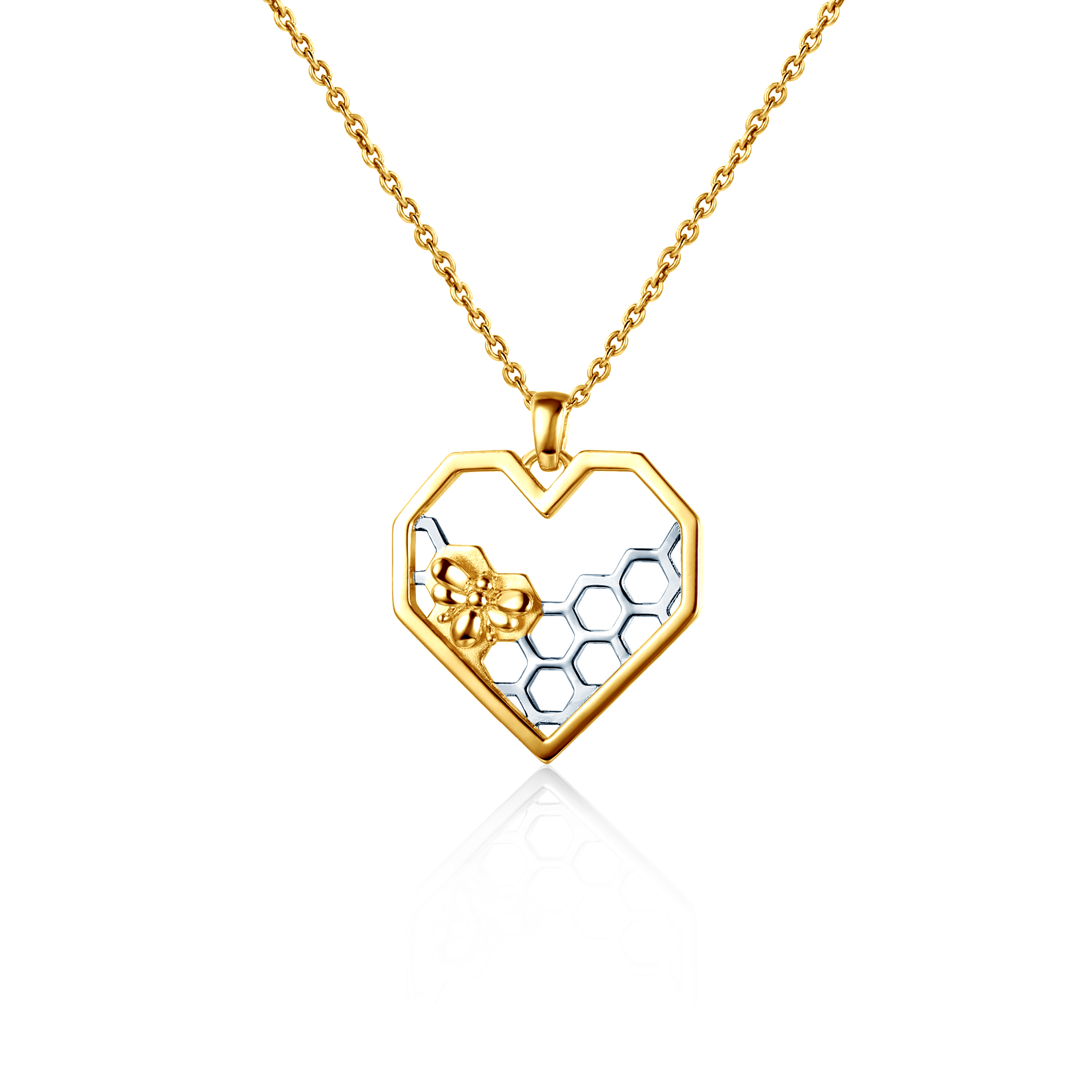 Naszyjnik celebrytka pszczoła i serce Savicki wykonany ze srebra (próba 925) pozłocony żółtym i białym złotem.
