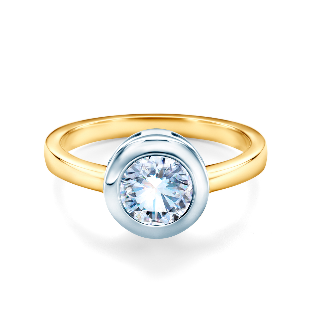 Pierścionek zaręczynowy z diamentem 1,00 ct o szlifie brylantowym wysokiej czystości SI/H, wykonany z 14-karatowego żółto-białego złota (próba 0,585).