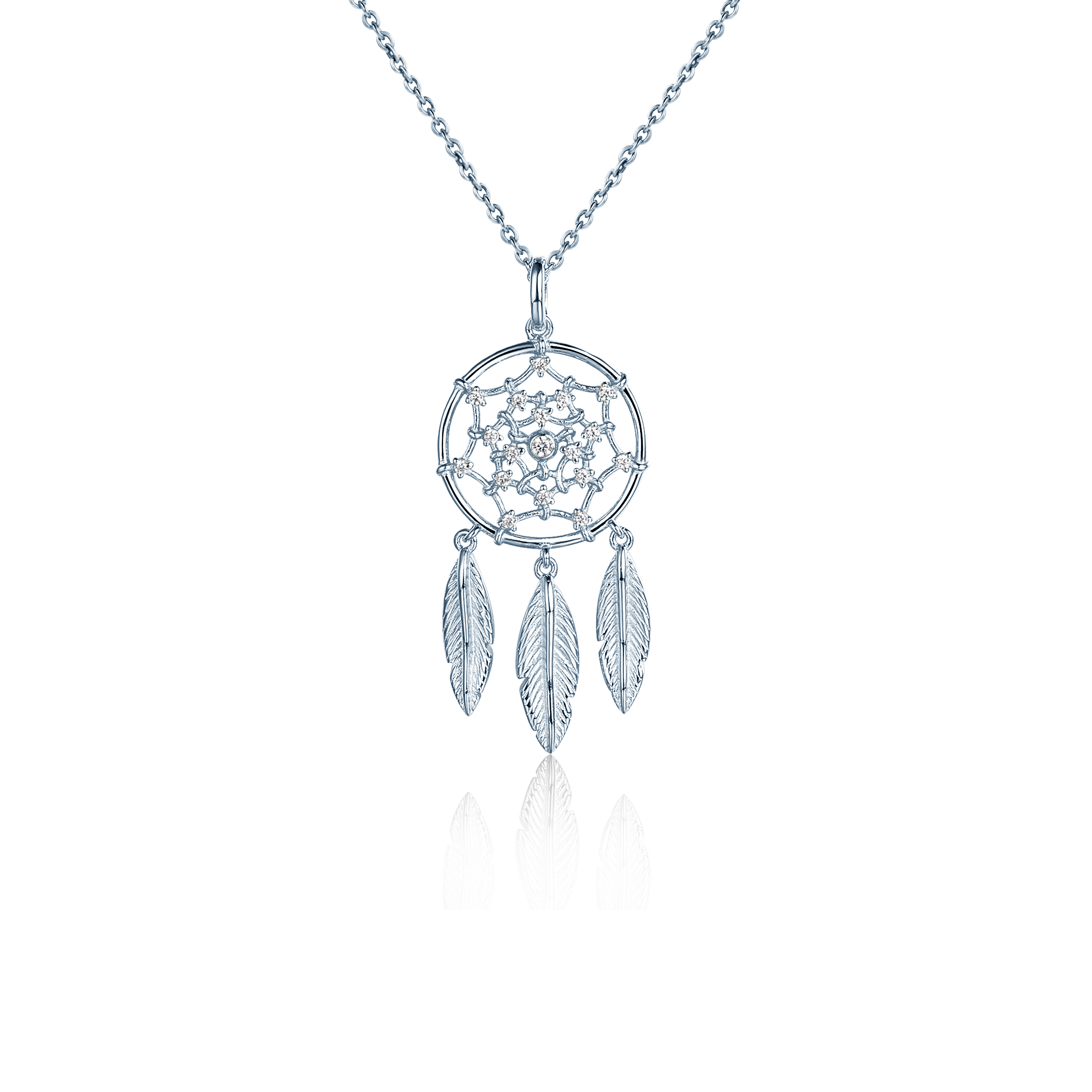 Naszyjnik celebrytka łapacz snów Savicki wykonany ze srebra (próba 925) pokryty warstwą rodu dla nadania wyjątkowego blasku. W naszyjniku osadzone zostały cyrkonie.