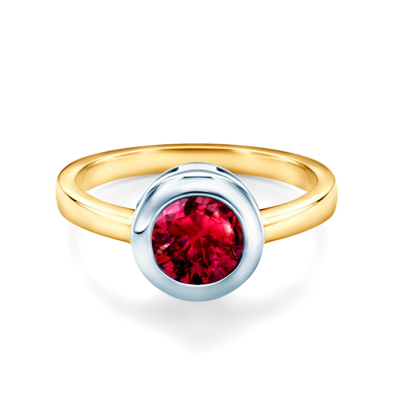 Pierścionek zaręczynowy z rubinem o masie 1,00 ct, wykonany z 14-karatowego żółto-białego złota (próba 0,585).