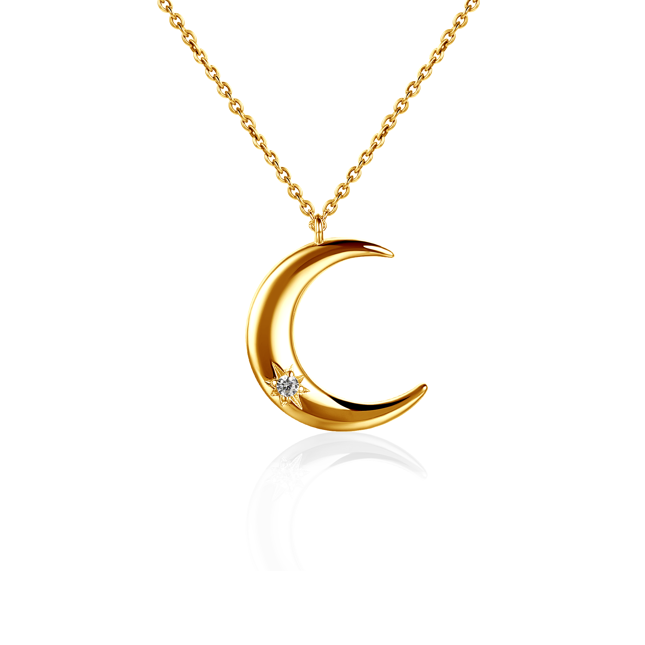 Naszyjnik celebrytka księżyc Savicki wykonany ze srebra (próba 925) pozłocony żółtym złotem. W naszyjniku osadzone zostały cyrkonie.