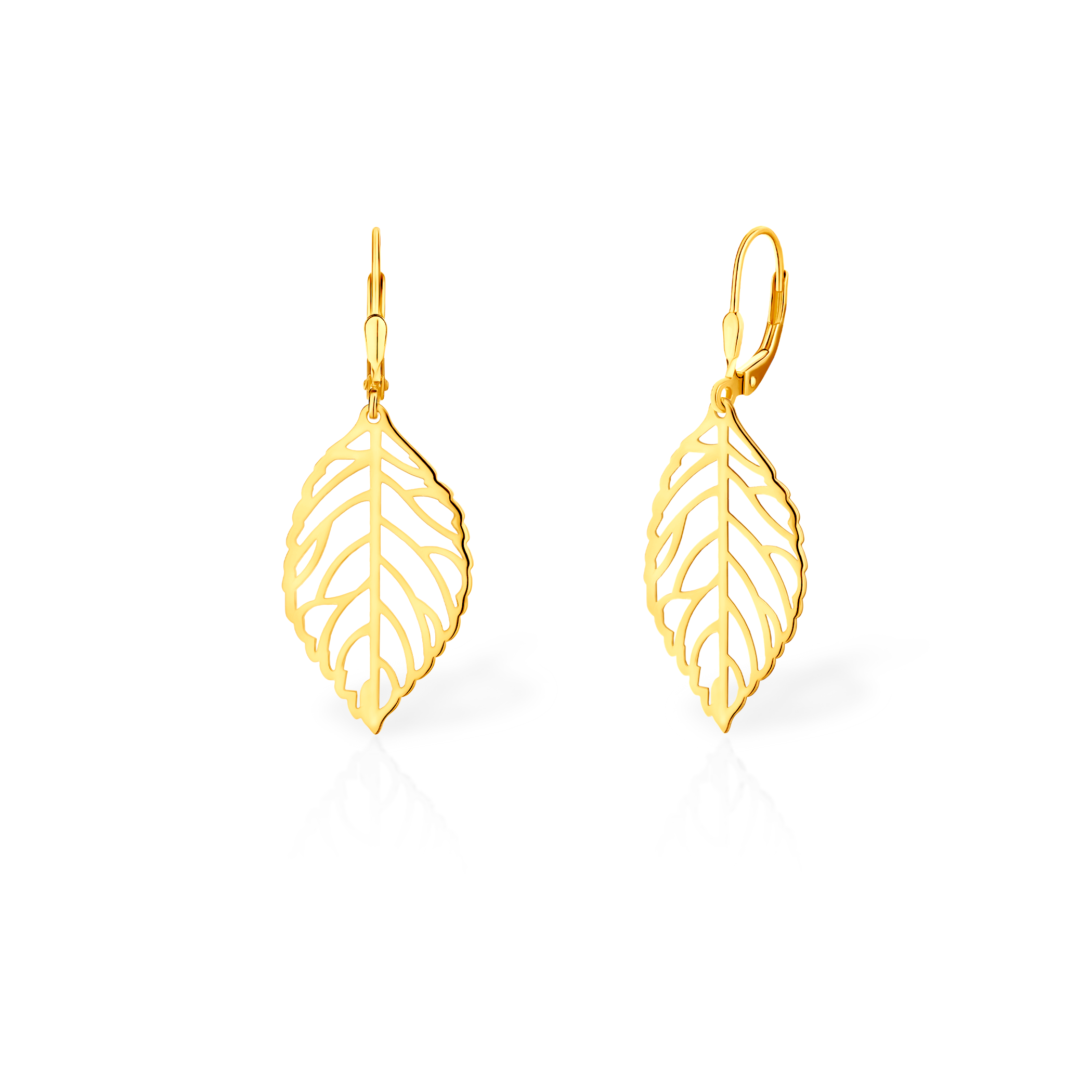 Kolczyki listki Savicki wykonane ze srebra (próba 925) pozłacane żółtym złotem.
