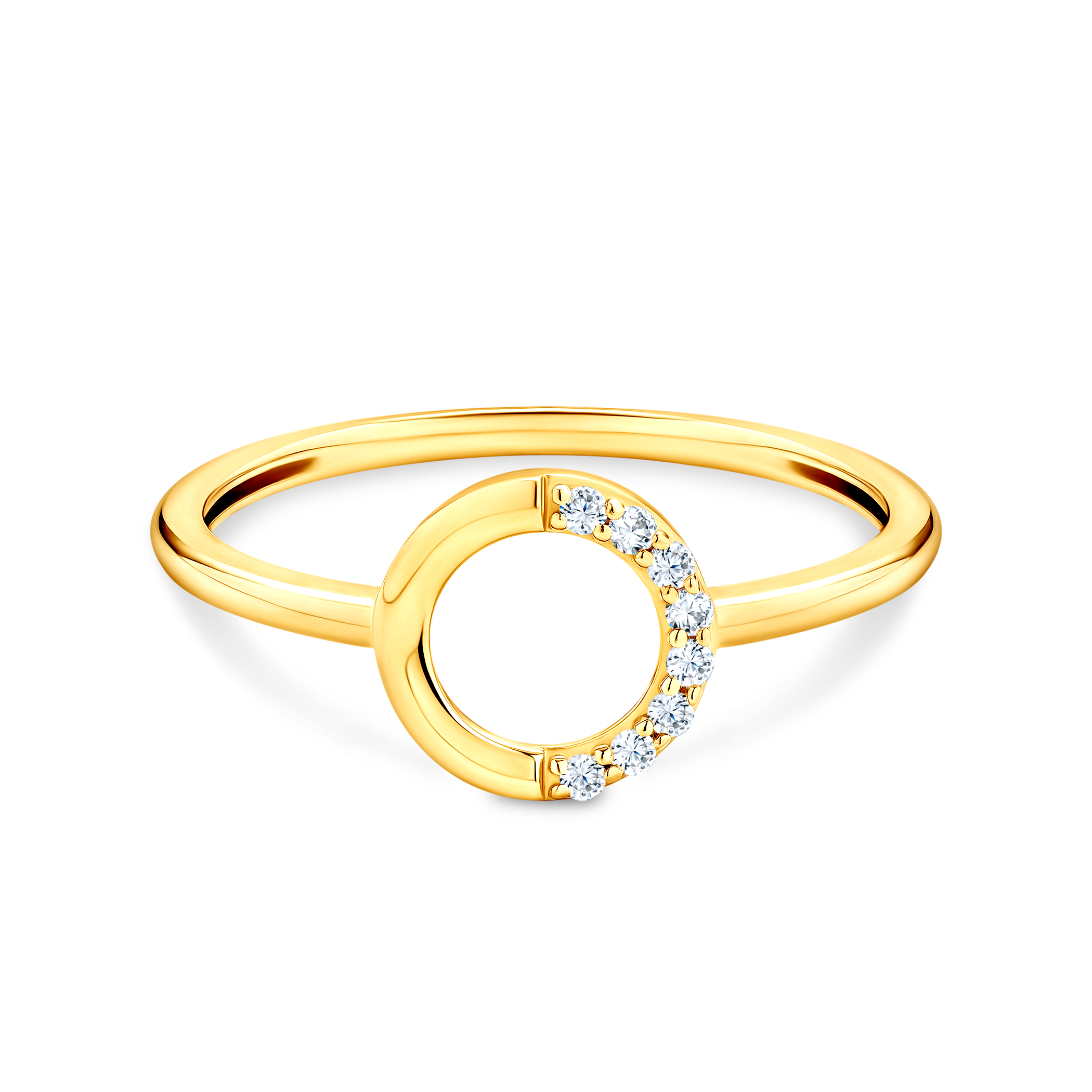 Pierścionek zaręczynowy z 8 diamentami (łączna masa 0,05 ct). Wykonany z 14-karatowego żółtego złota (próba 585).