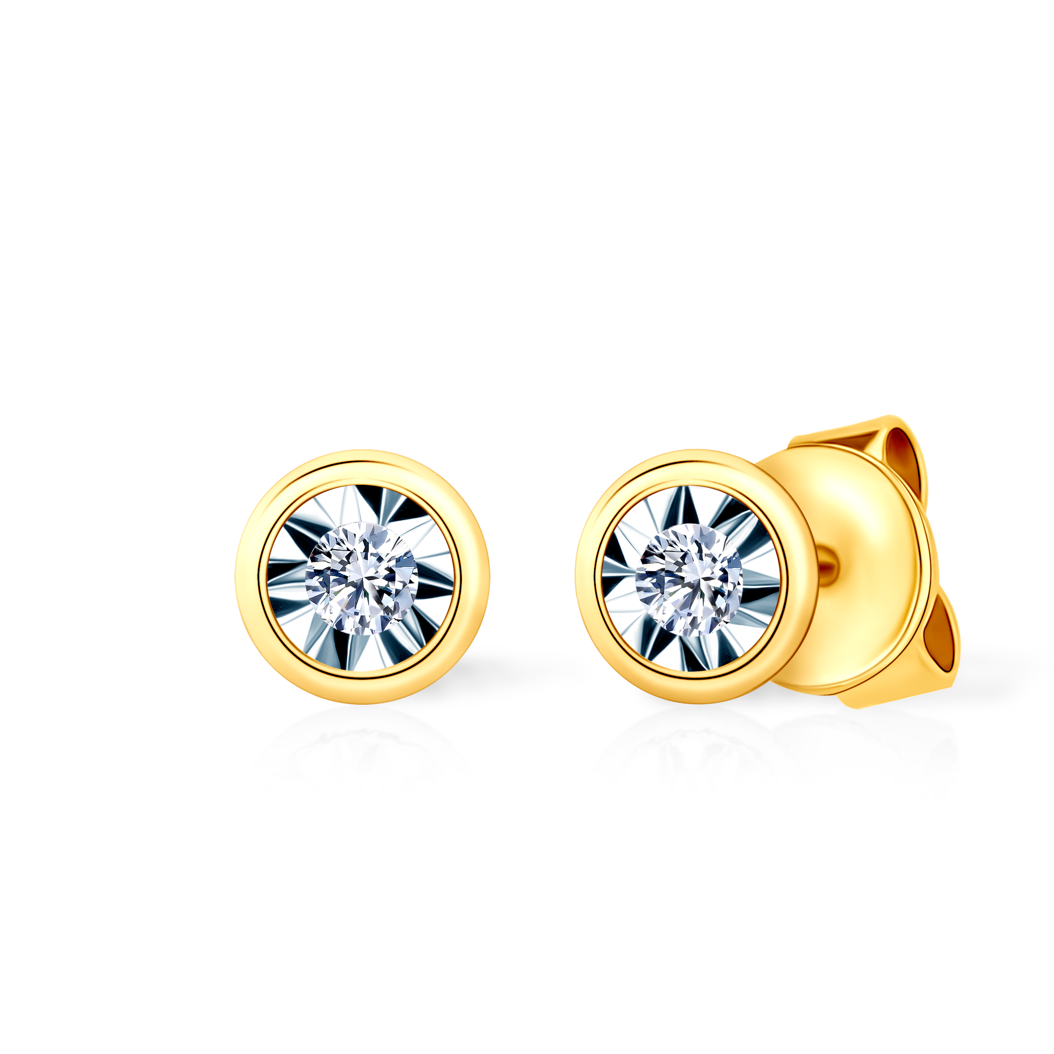 Kolczyki z 2 diamentami w szlifie brylantowym o łącznej masie 0,08 ct, wykonane z żółtego złota (próba 585).