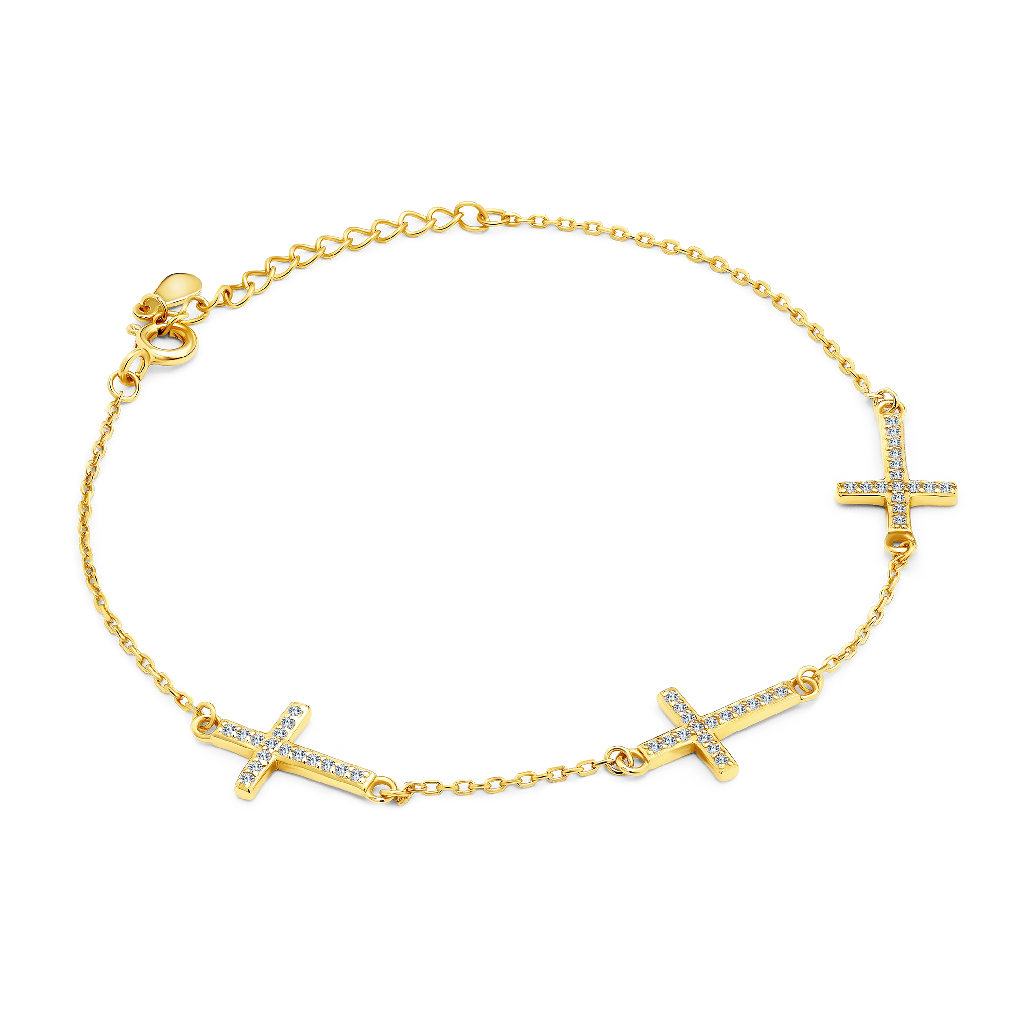 Bransoletka celebrytka krzyżyk Savicki wykonana ze srebra (próba 925) pozłocona żółtym złotem. W bransoletce osadzone zostały cyrkonie.