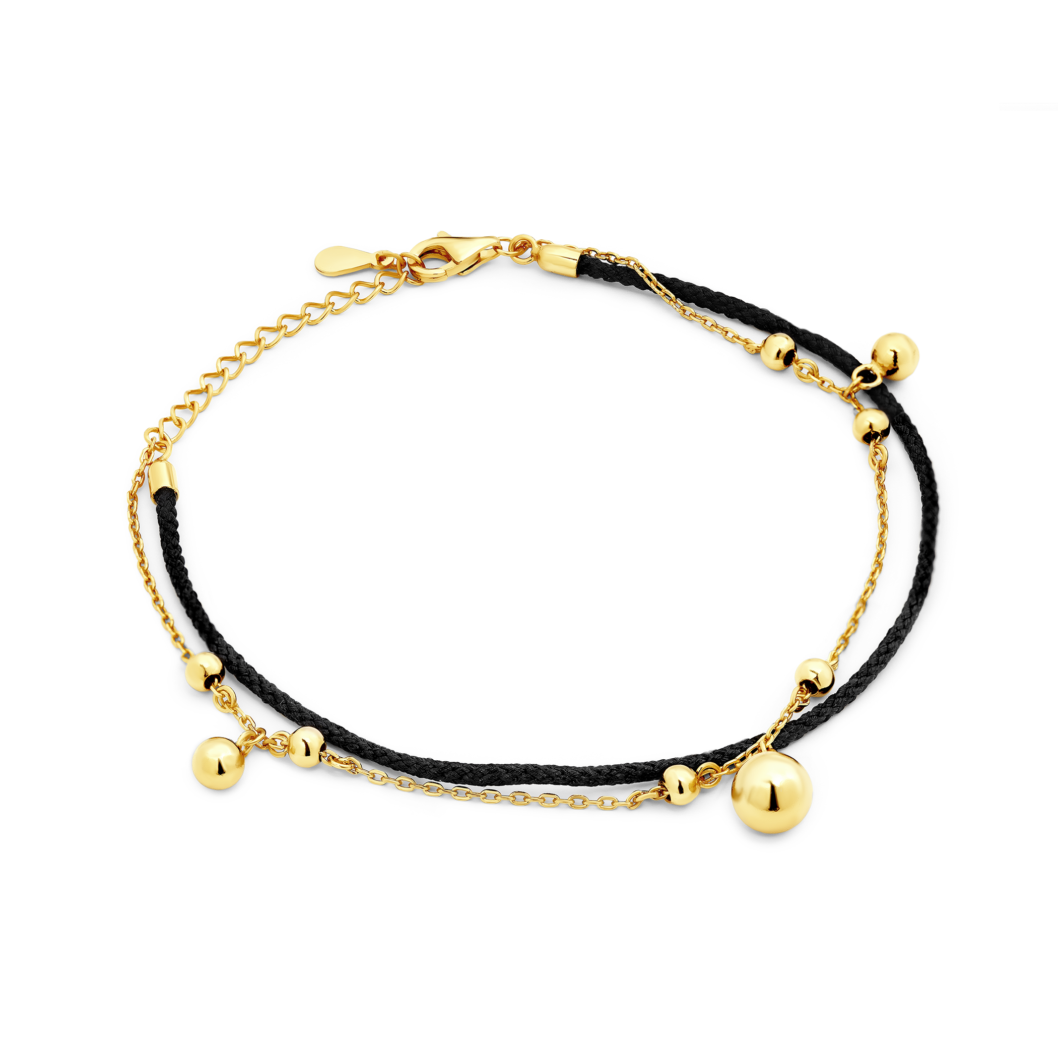 Bransoletka kuleczki Savicki, na rzemyku, wykonana ze srebra (próba 925), pozłacana żółtym złotem.