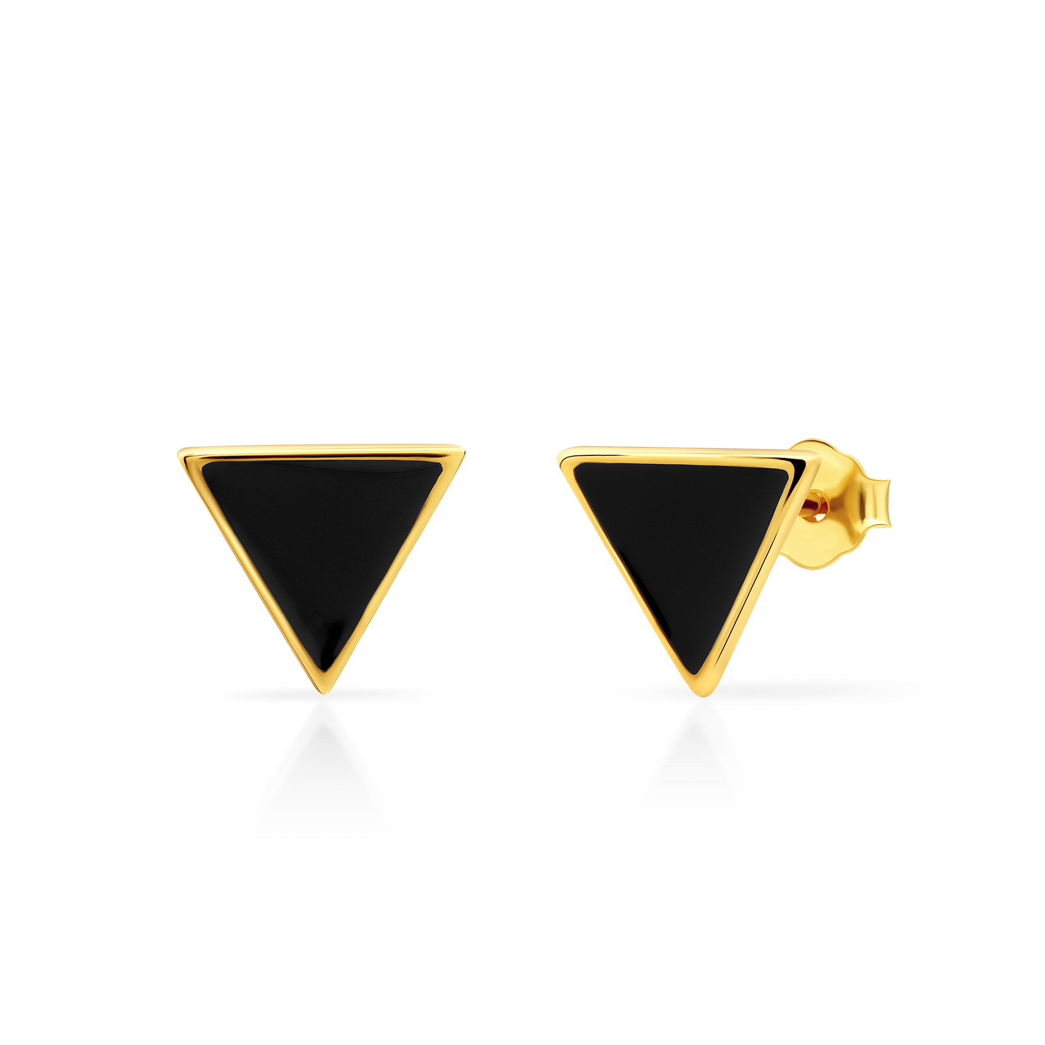 Kolczyki trójkąty Savicki, czarne emaliowane, wykonane ze srebra (próba 925) pozłacane żółtym złotem.