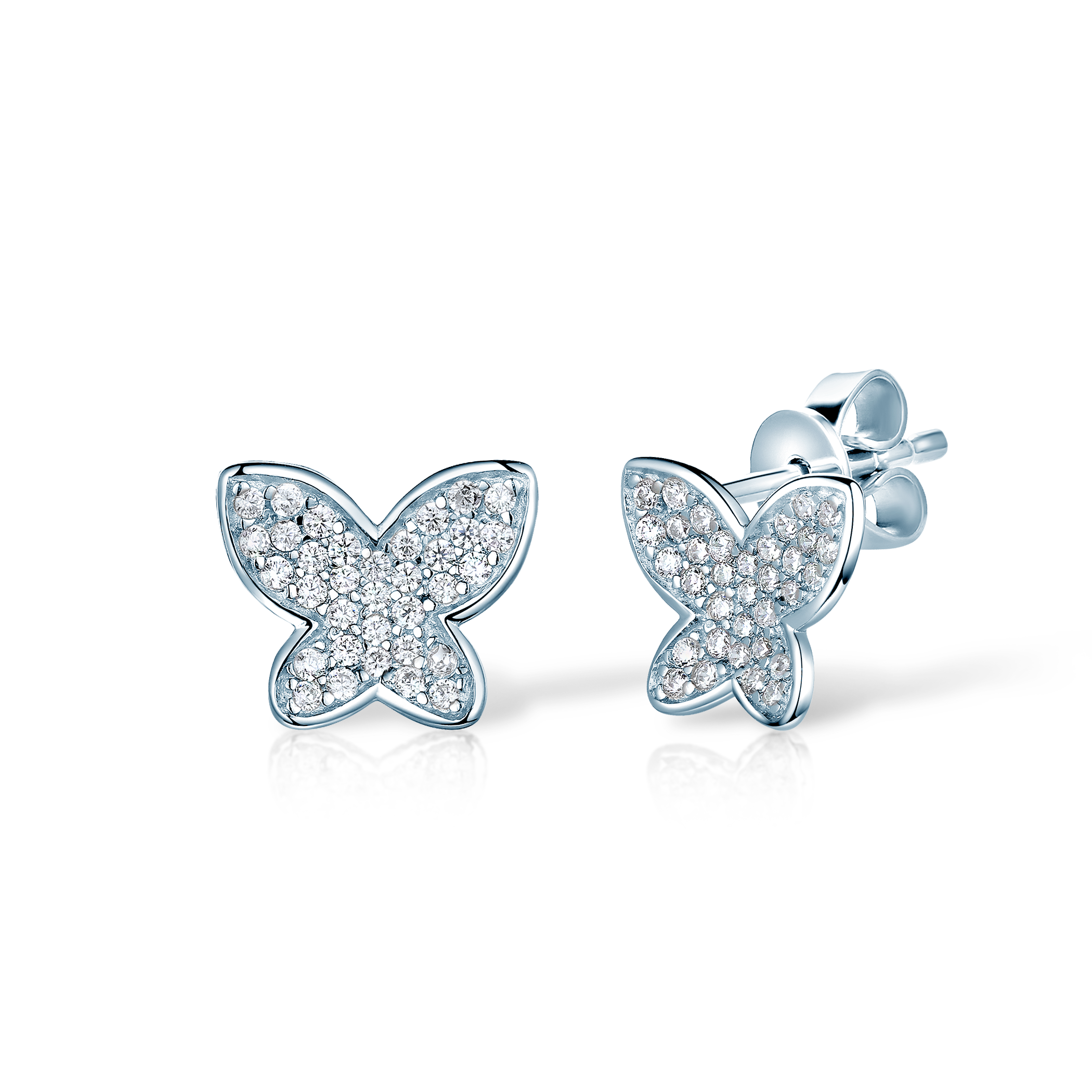 Kolczyki z motywem motylka wykonane ze srebra (pr. 925), osadzone 68 cyrkoniami.