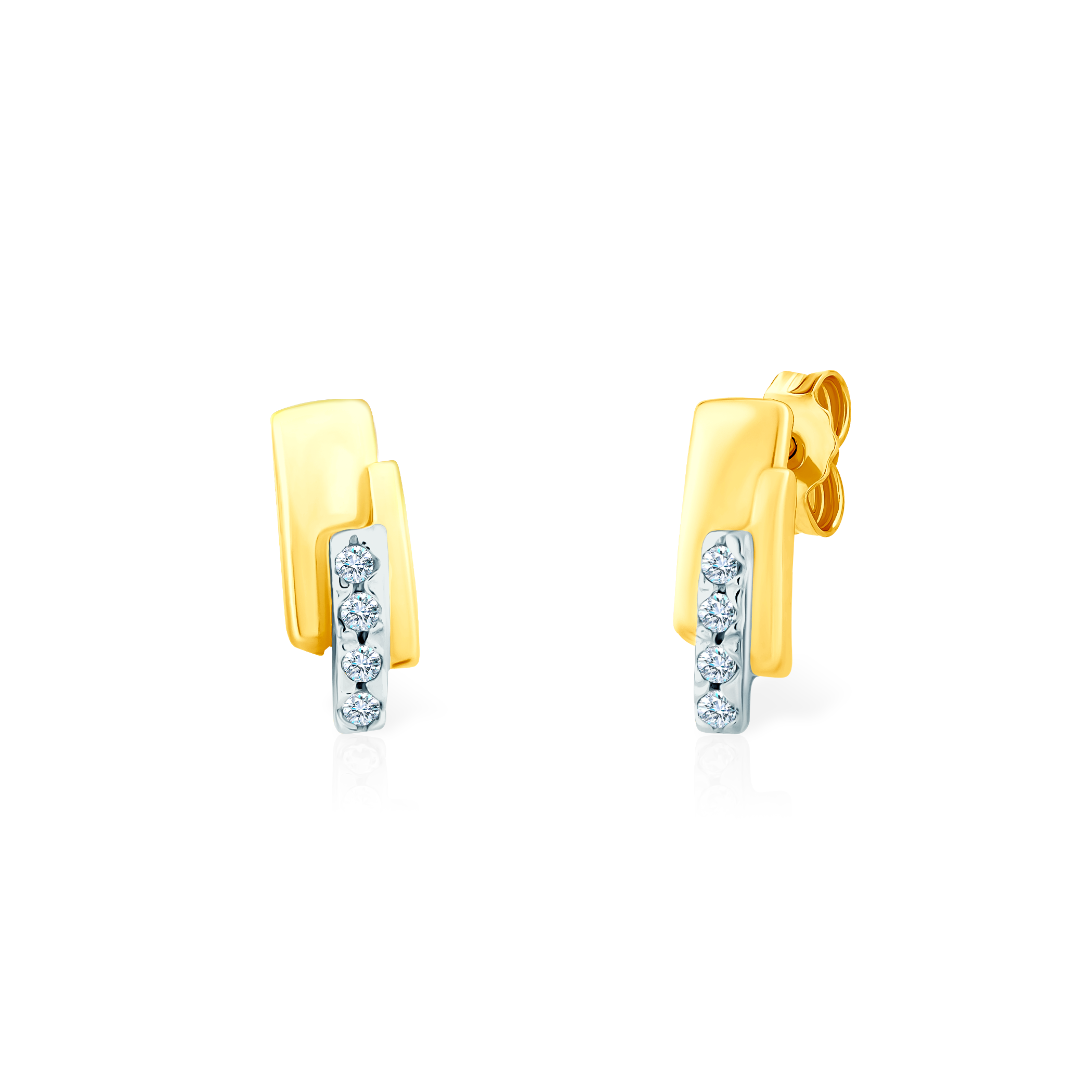 Kolczyki Savicki wykonane z żółtego złota i białego złota (próba 585). W kolczykach zostało osadzonych 8 cyrkonii.