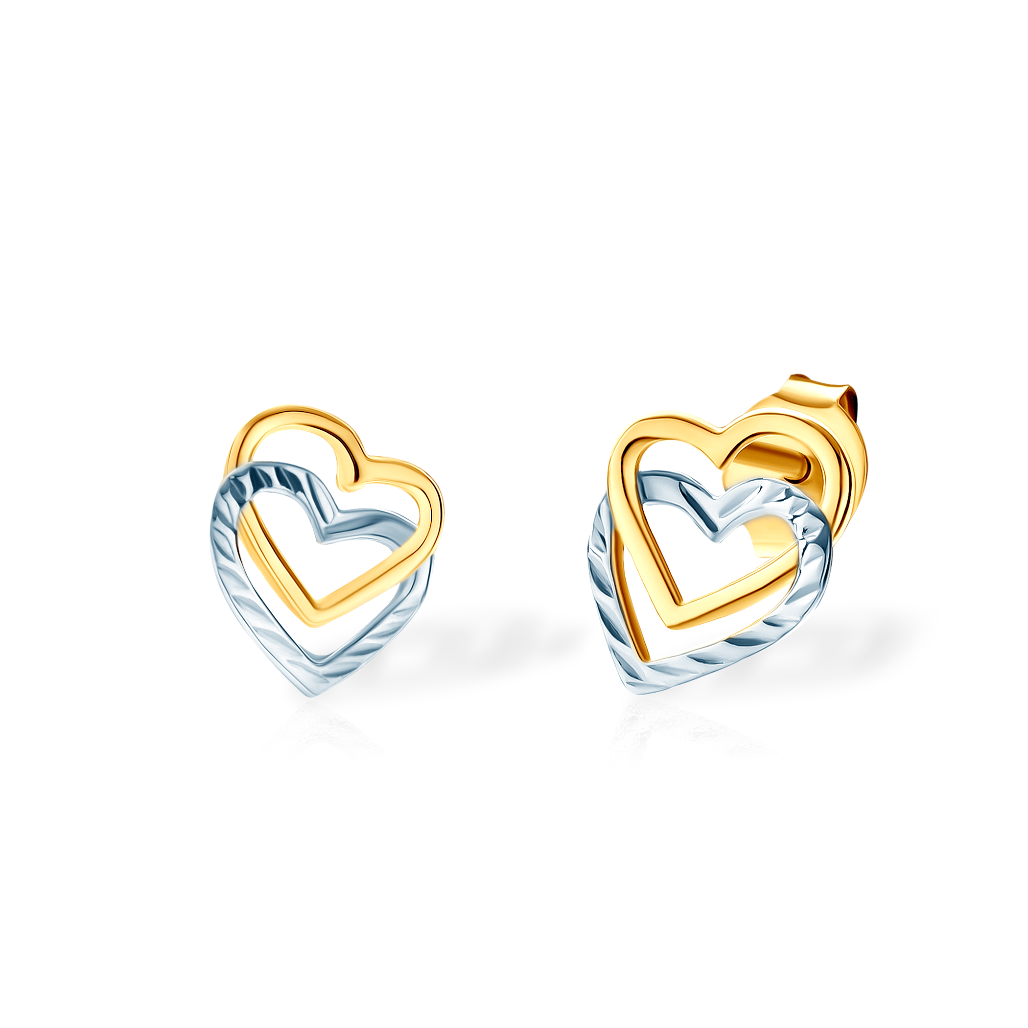 Kolczyki serduszka Savicki wykonane z żółtego i białego złota (próba 585).