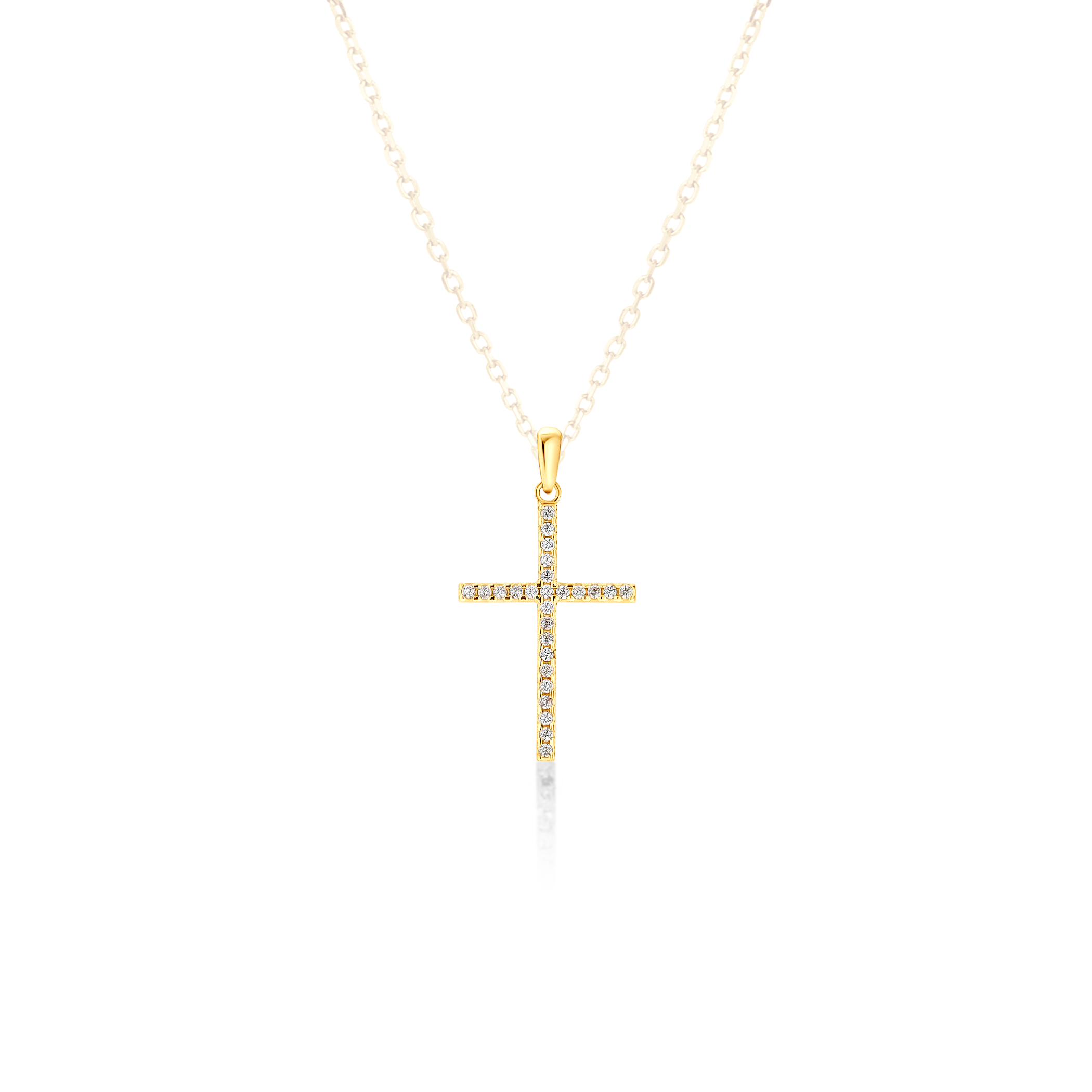 Zawieszka Savicki wykonana z żółtego złota (próby 585). Dwustronny, z czarnymi i białymi cyrkoniami.