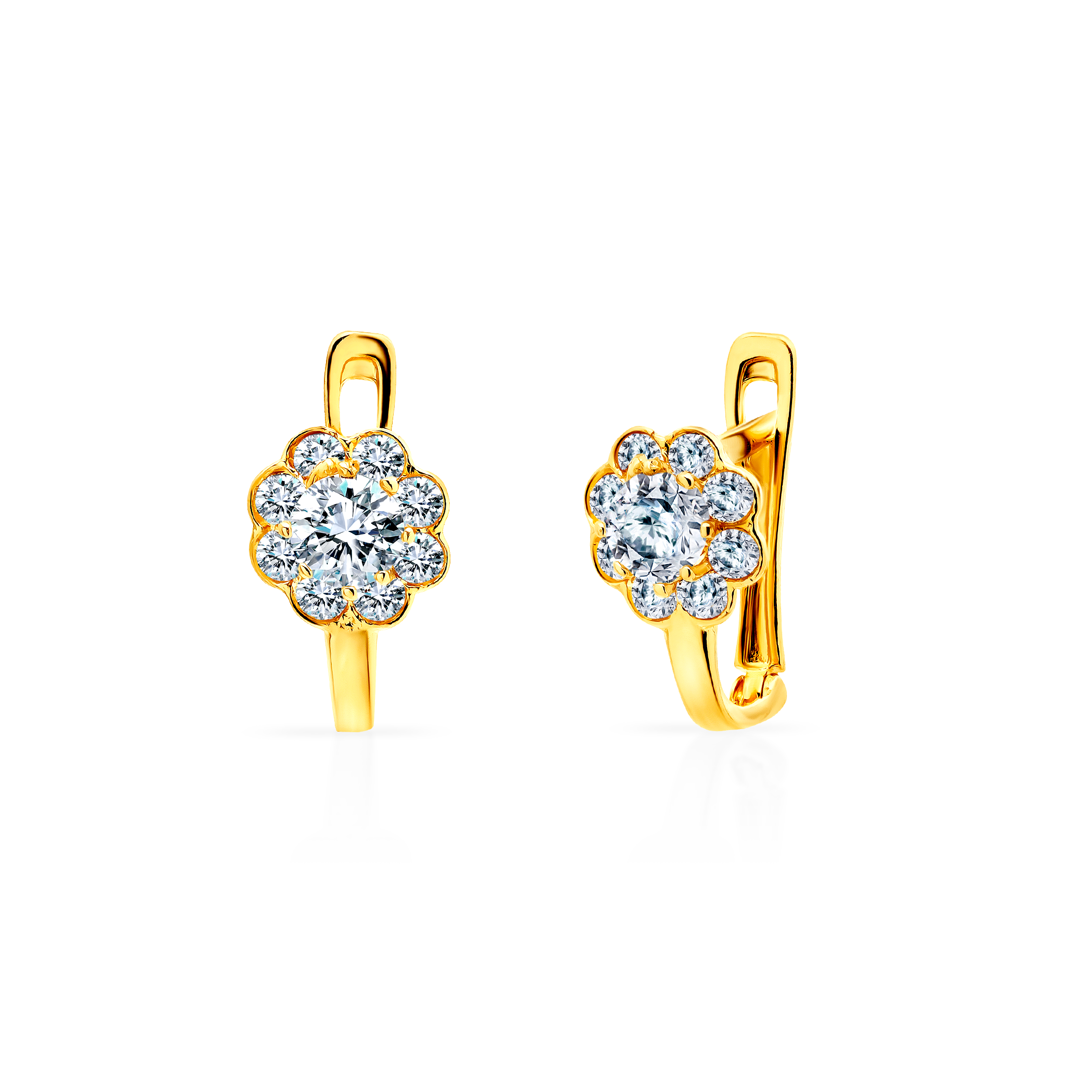Kolczyki kwiaty Savicki wykonane z żółtego złota (próba 585). W kolczykach zostały osadzone cyrkonie.