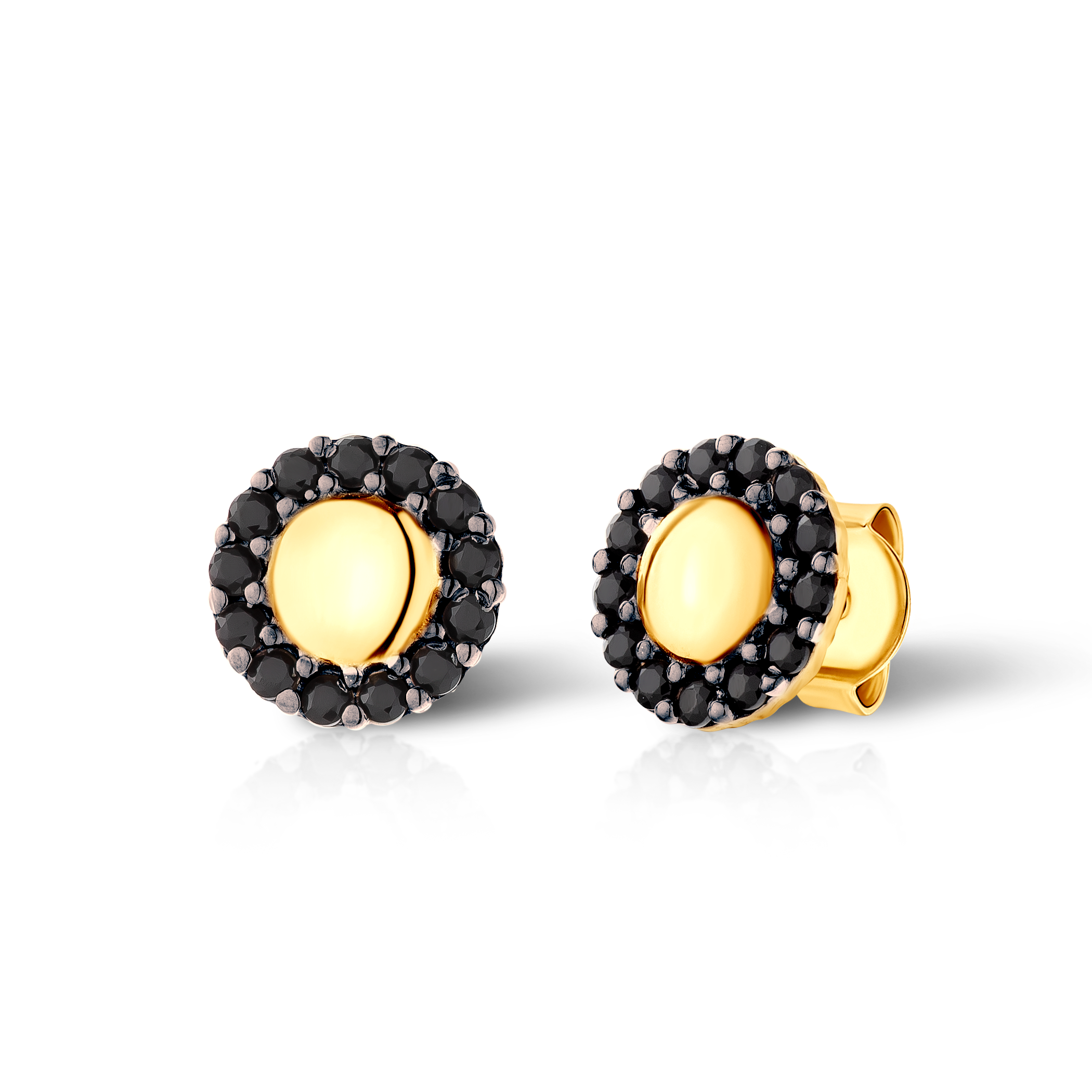 Kolczyki koła Savicki wykonane z żółtego złota (próba 585). W kolczykach zostały osadzone czarne cyrkonie.