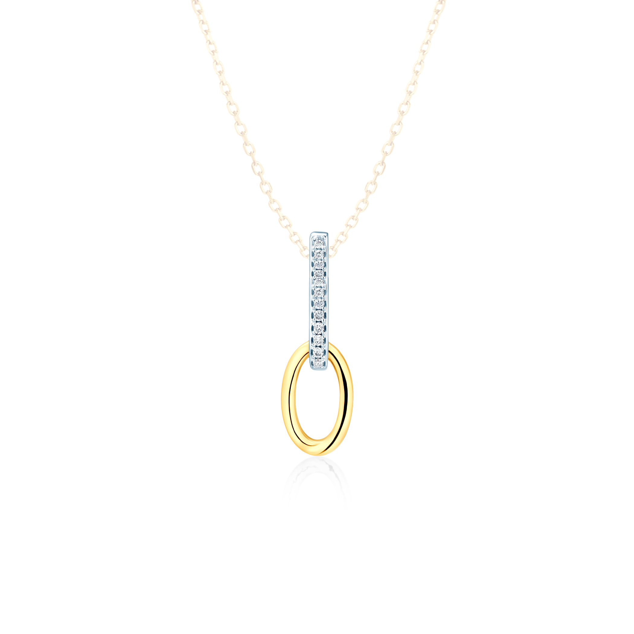Zawieszka wykonana z żółtego i białego złota (próby 375). W zawieszce zostało osadzonych 12 diamentów.