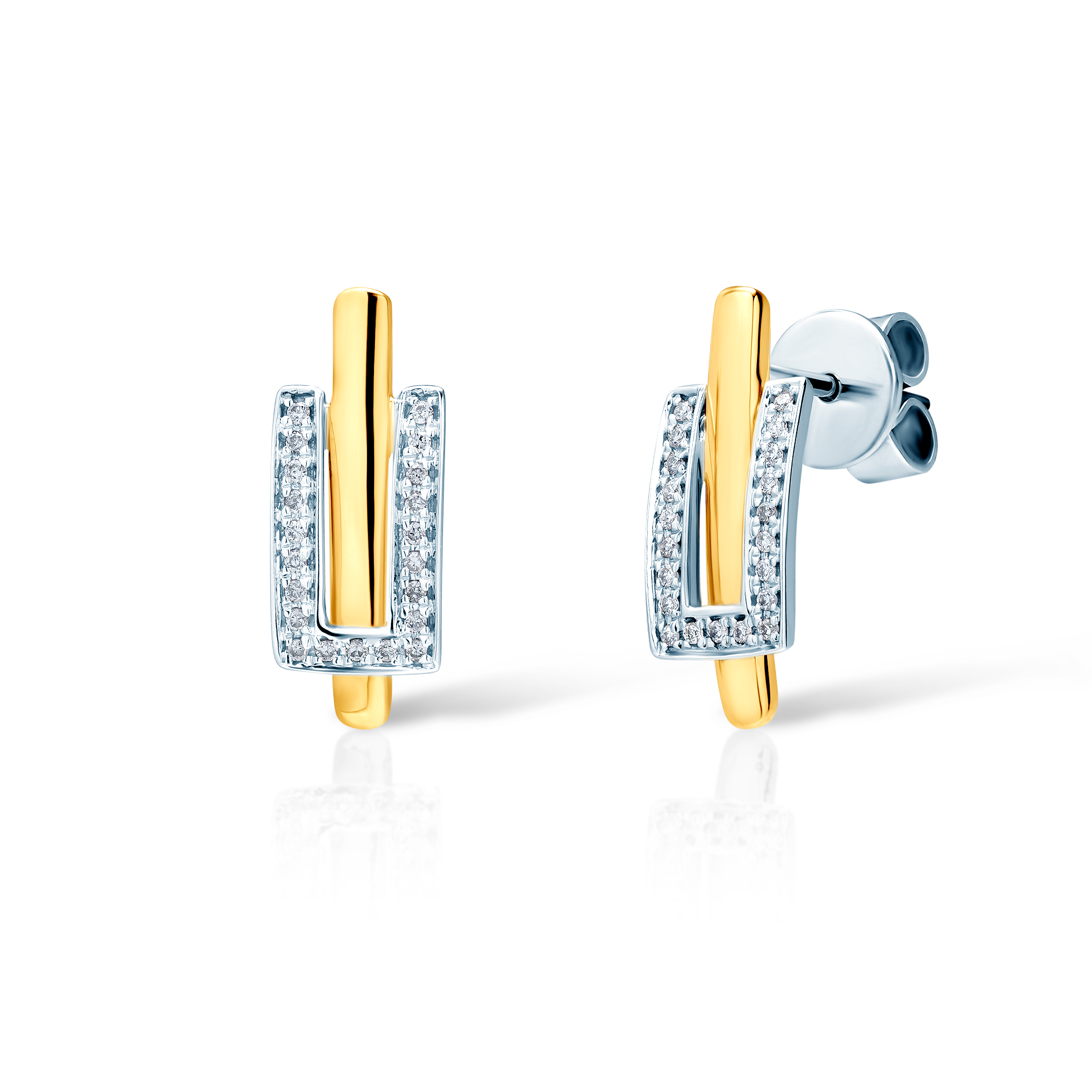 Kolczyki z 42 diamentami wykonane z żółtego i białego złota (próba 375).