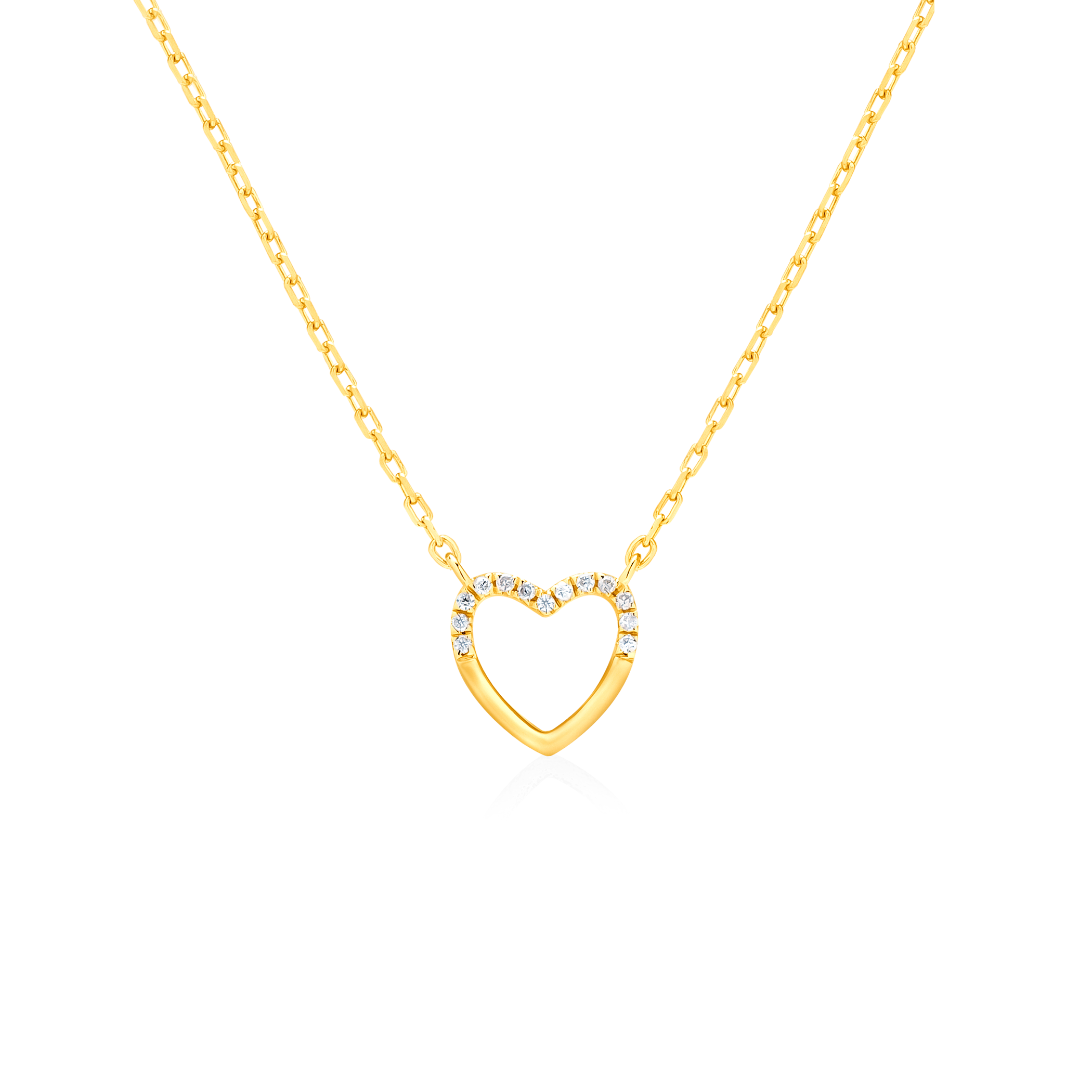 Naszyjnik serce wykonany z żółtego złota (próba 375). W naszyjniku zostało osadzonych 13 diamentów. Długość łańcuszka: 40-45cm.