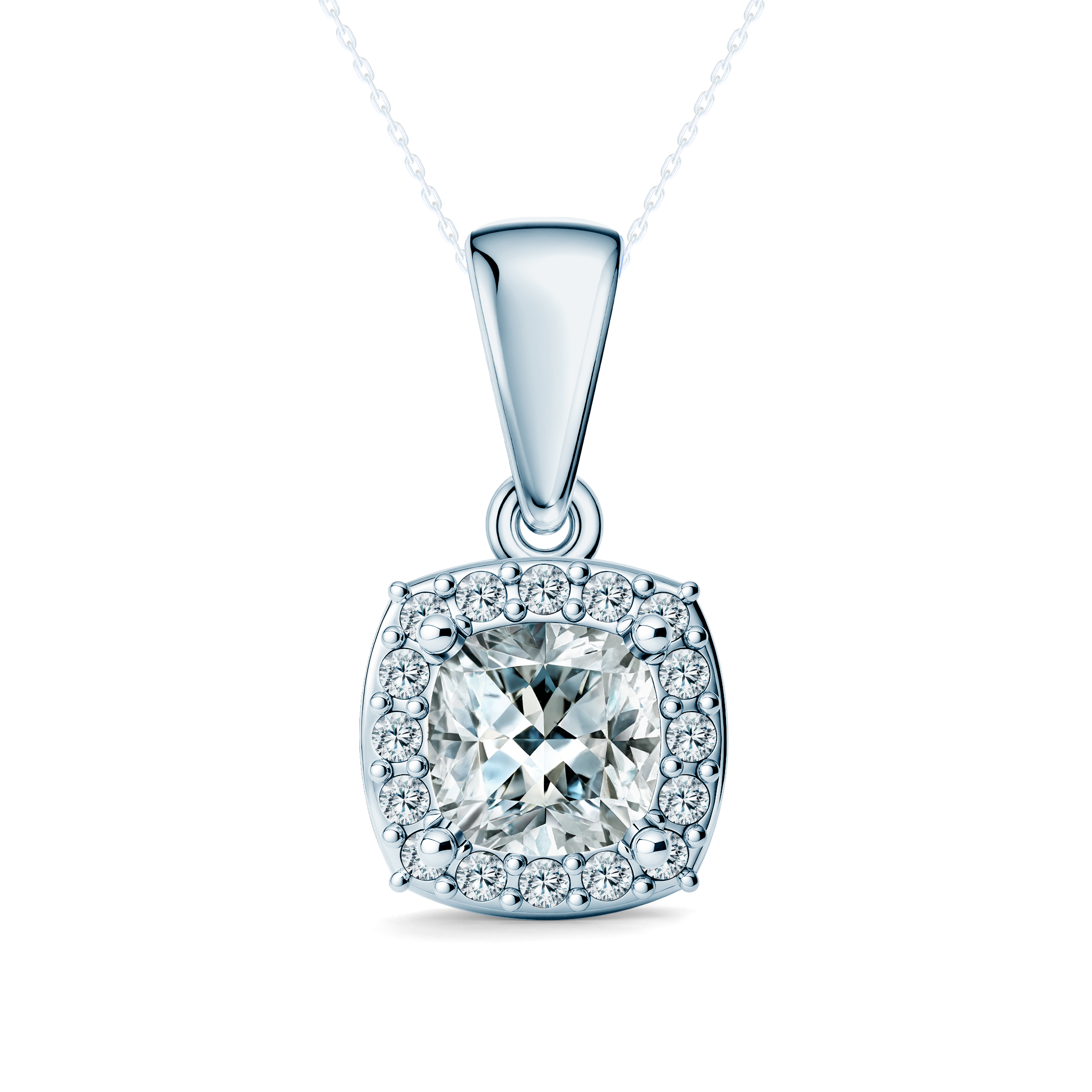Zawieszka This is Love: białe złoto, diamenty laboratoryjne w szlifie poduszkowym