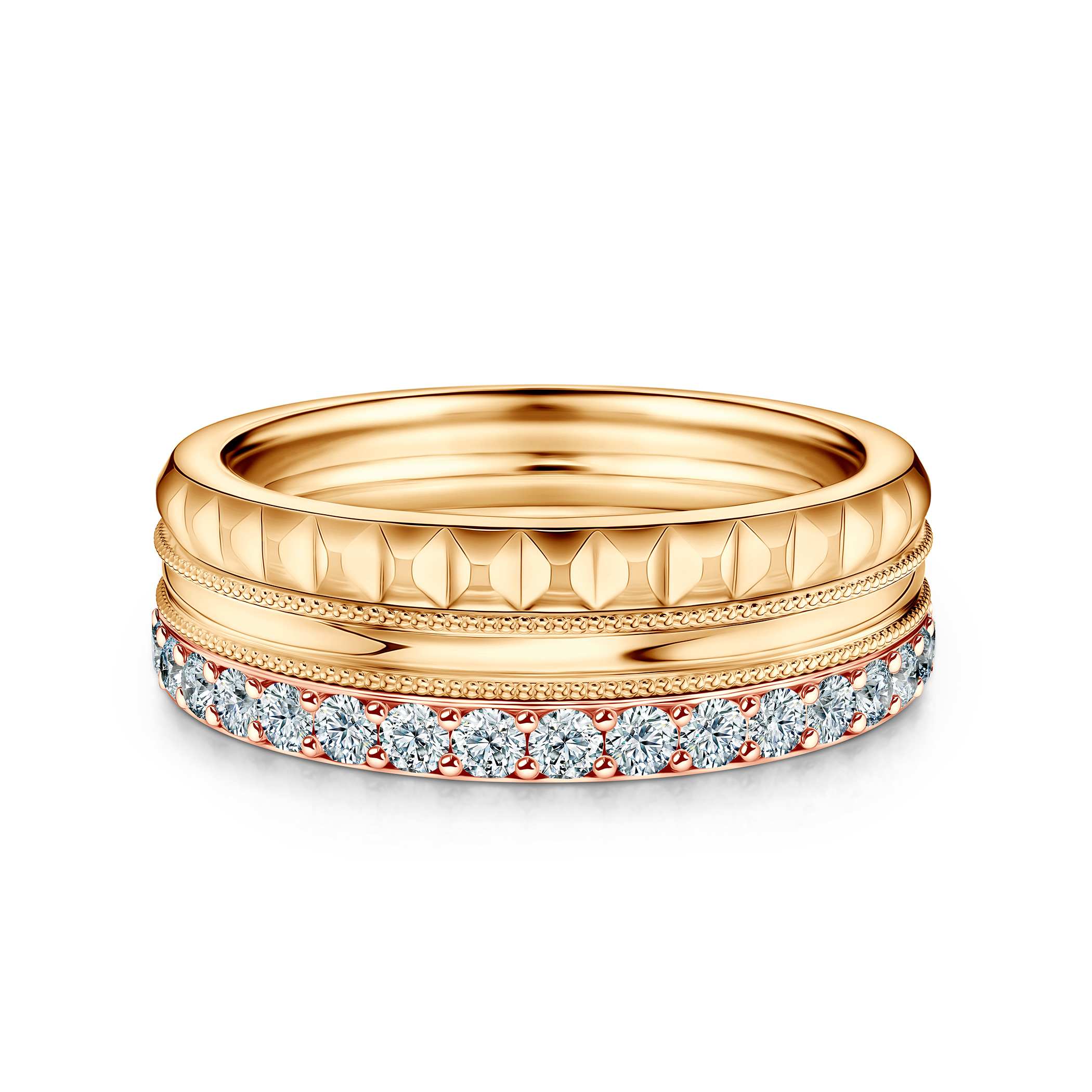 Pierścionki Symphony zestaw: złoty, dwukolorowy, diamenty