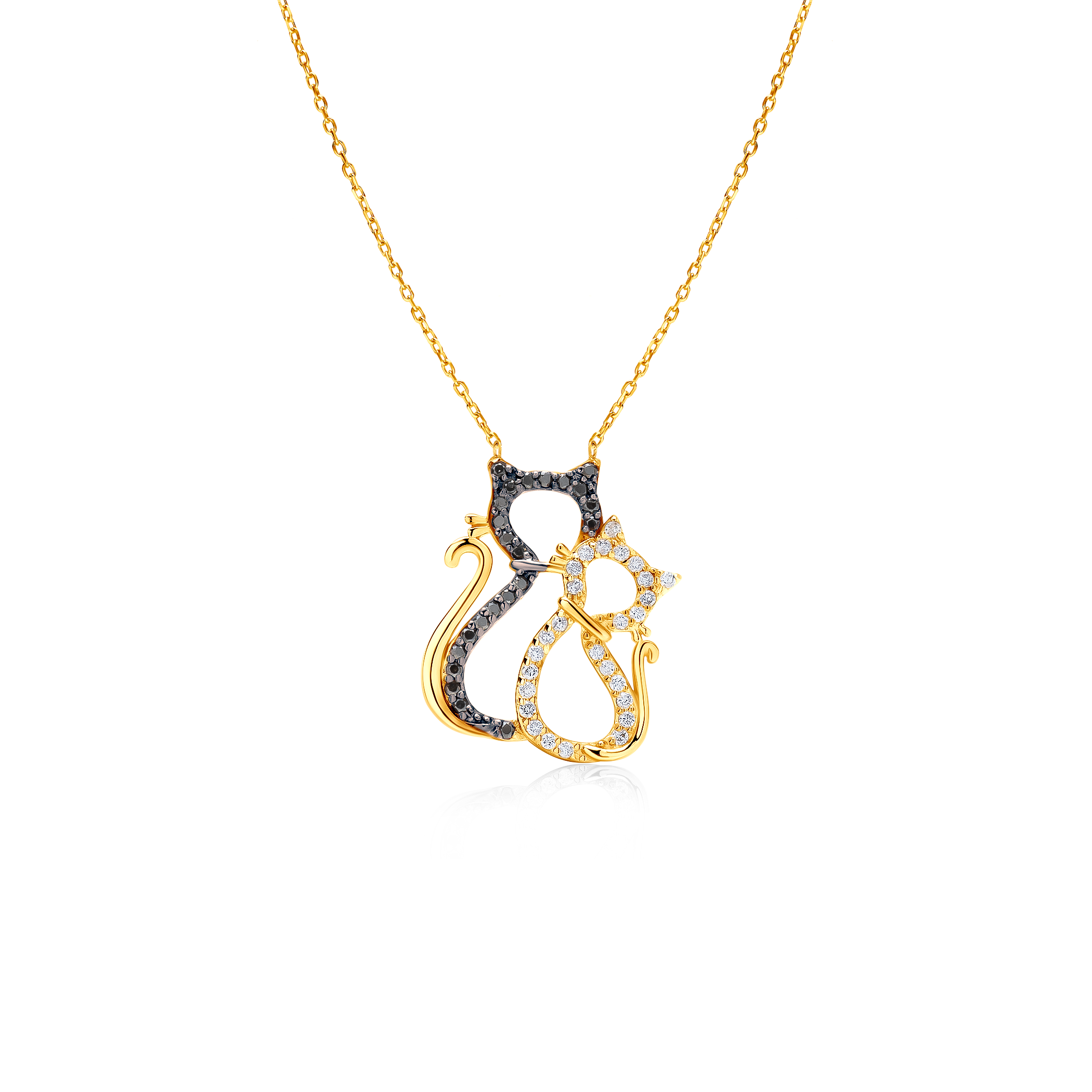 Naszyjnik koty Savicki: złoty, diamenty, czarne diamenty