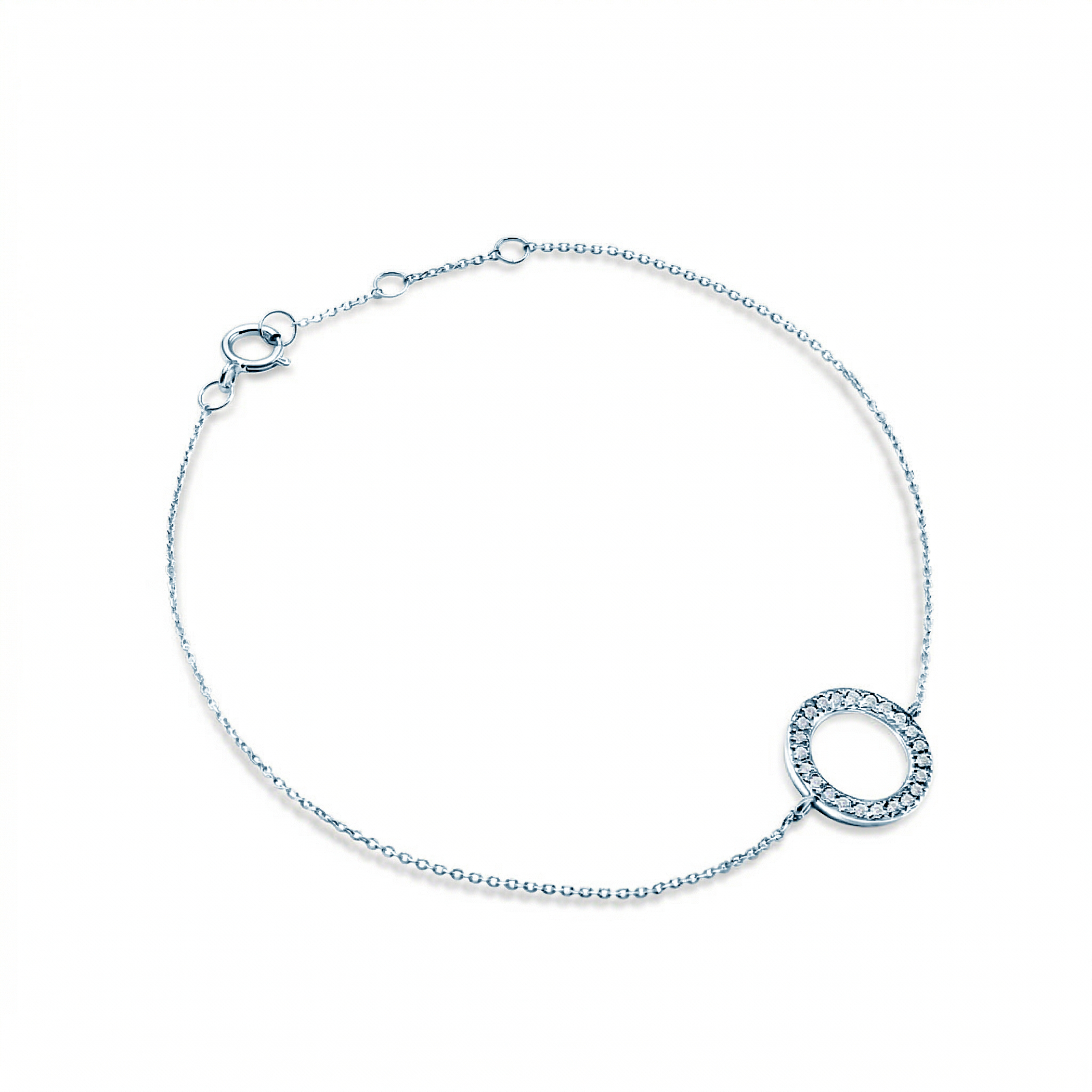 Bransoletka celebrytka koło z białego złota 585 z białym diamentem 0.06ct 18cm