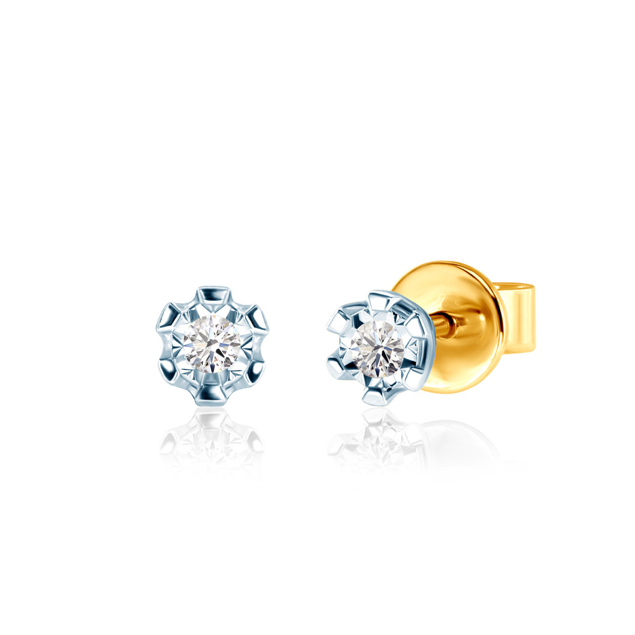 Kolczyki kwiatki Savicki: dwukolorowe złoto, diamenty