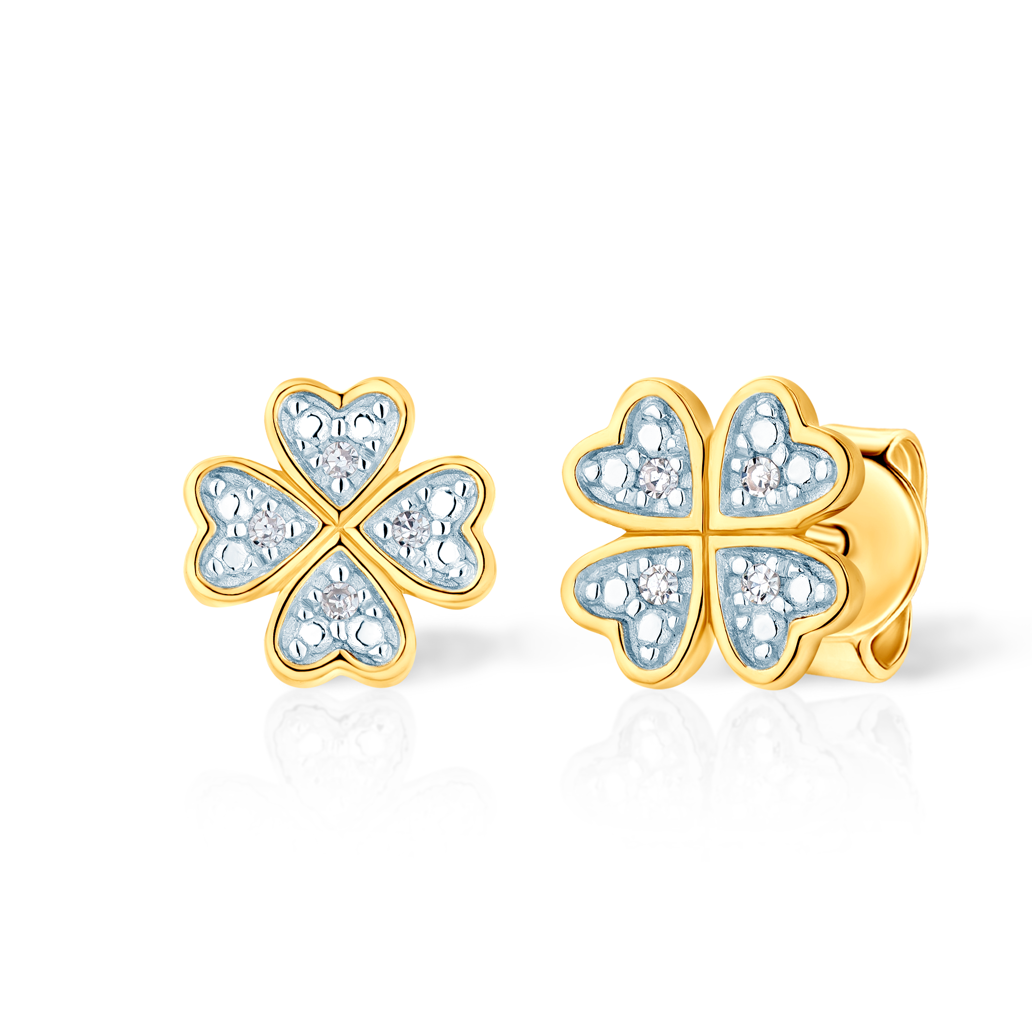 Kolczyki koniczynki Savicki: złote, diamenty