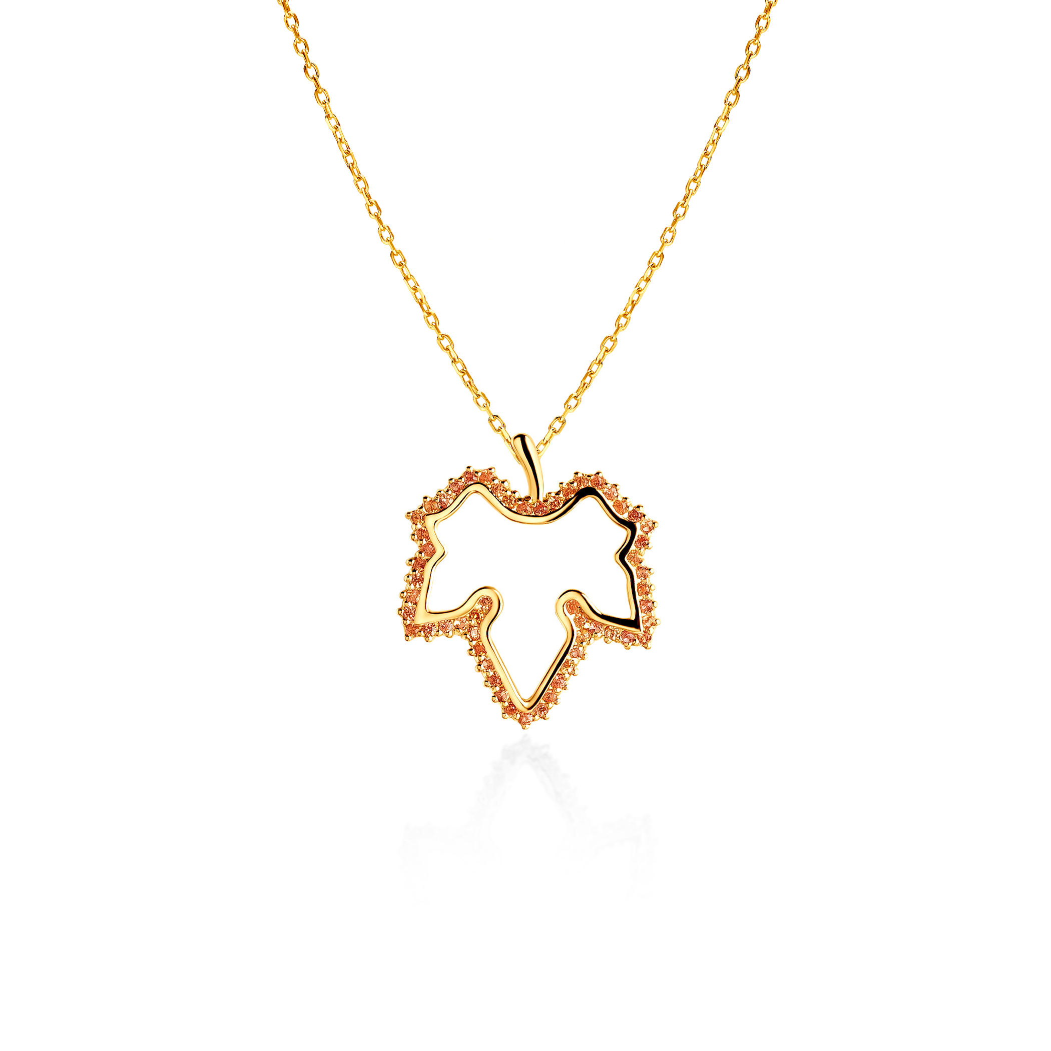 Naszyjnik liść klonu Savicki: złoty, pomarańczowe szafiry