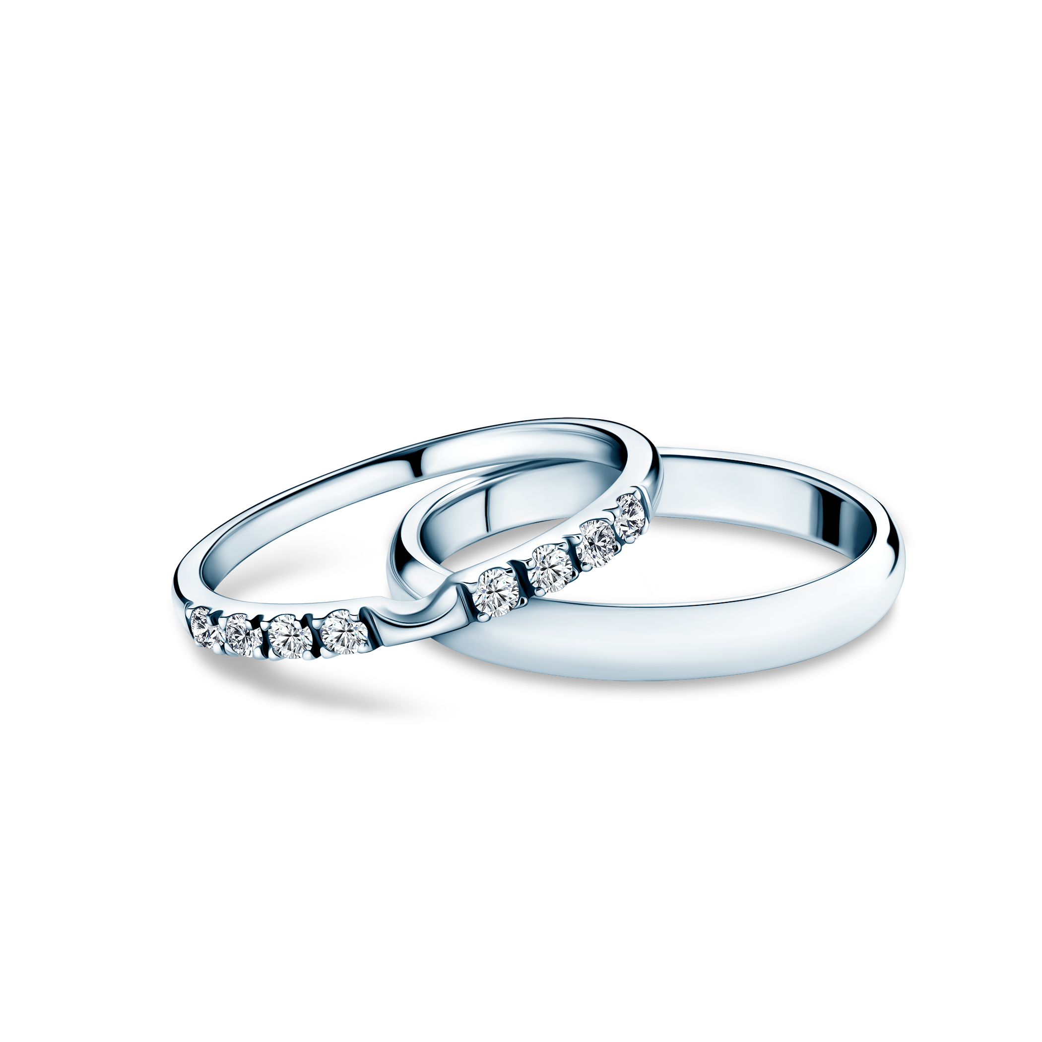 Obrączki The Journey to symbol wspólnej drogi pełnej miłości. Kamienie szlachetne oprawione do połowy idealnie harmonizują z pierścionkiem zaręczynowym, a specjalne wyprofilowanie zapewnia perfekcyjne dopasowanie, łącząc piękno i wygodę w jednej formie.
