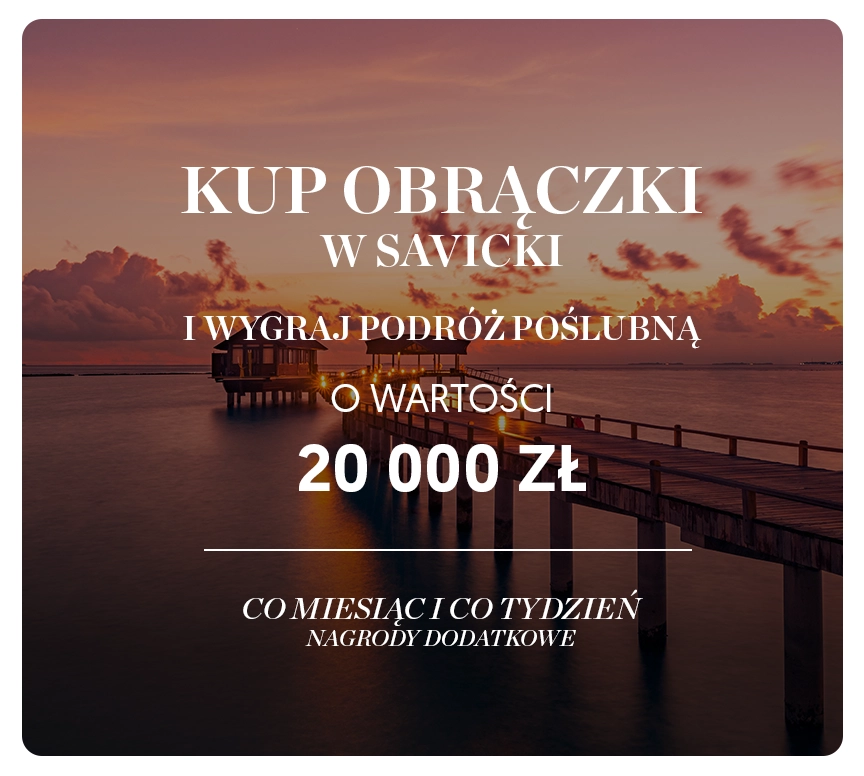 Kolekcje SAVICKI powstają z myślą o codziennym komforcie, trwałości oraz estetyce. Wiele modeli zostało zaprojektowanych tak, aby harmonijnie łączyć się z pierścionkiem zaręczynowym oraz umożliwiać personalizację.