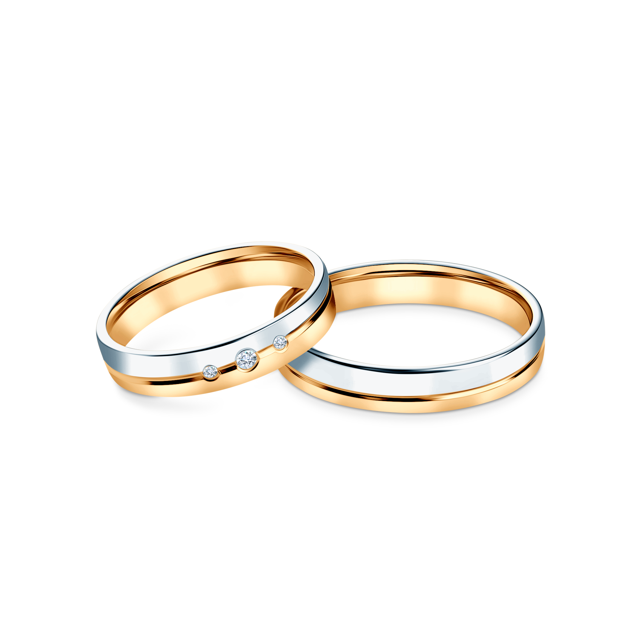 Obrączki ślubne: dwukolorowe złoto, płaskie, 4 mm