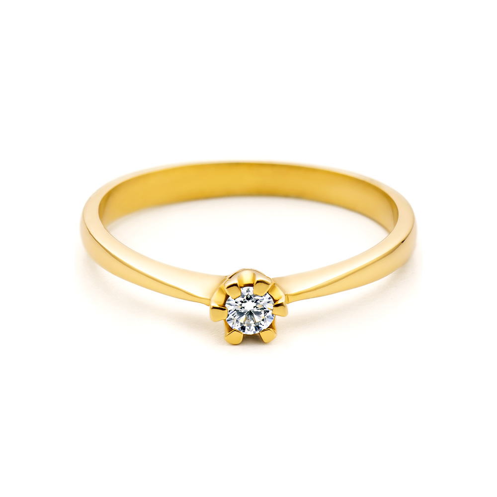 • Pierścionek z brylantem z żółtego 14-karatowego złota.
