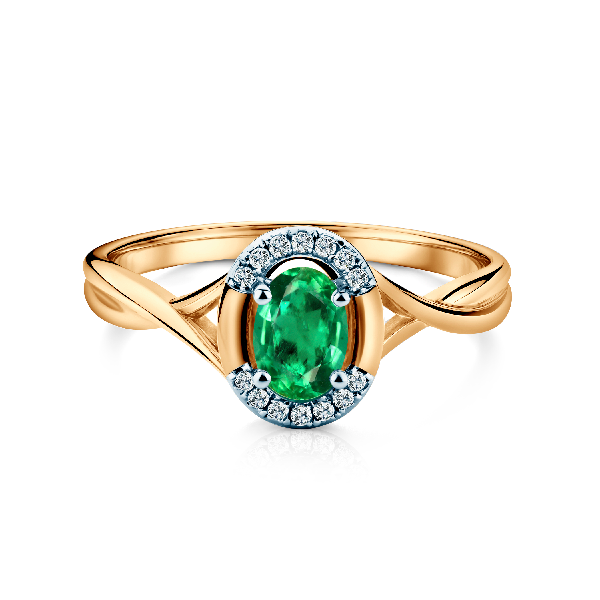 Pierścionek zaręczynowy SAVICKI: dwukolorowe złoto, szmaragd, diamenty