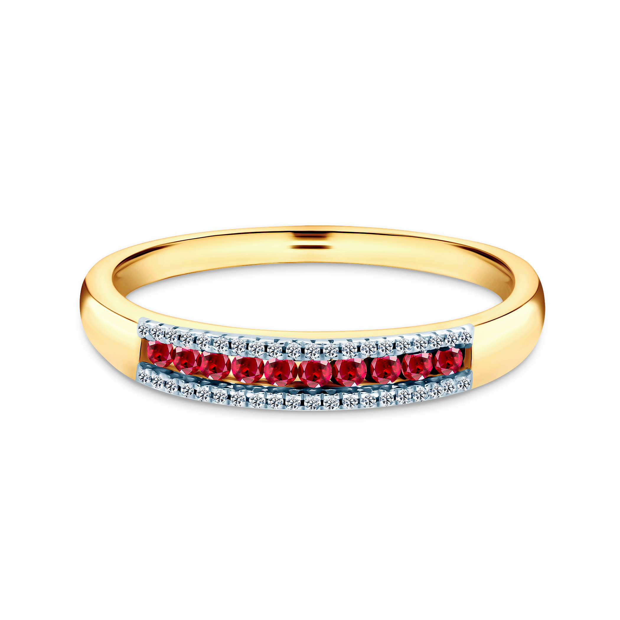 Złoty pierścionek z czerwonym oczkiem (np. rubin, granat) — wyraża pasję, miłość i energię, która napędza do działania.